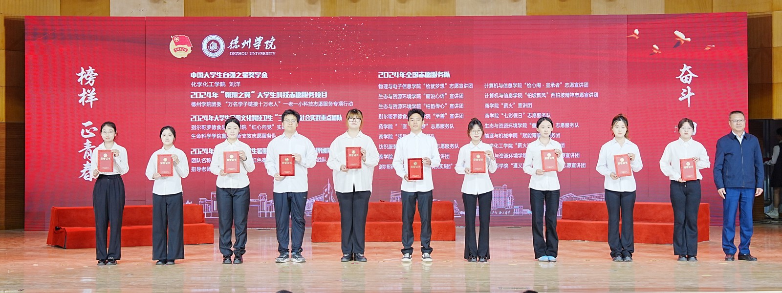 大会对2024年度荣获全国、全省和学校的共青团工作先进青年集体和个人进行了表彰。校领导依次为获奖代表颁奖。