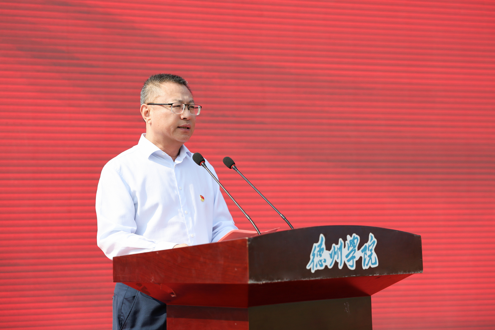 5月27日,德州市“红心向党 薪火相传”大中小学生入党入团入队集中宣誓活动在我校举办。旨在深入学习贯彻习近平总书记关于青年工作的重要思想,推进大中小学思想政治教育一体化建设,推动党、团、队育人链条贯通衔接、紧密联系、有机统一。市委常委、统战部部长,德州高新区党工委书记、管委会主任张志华,校党委书记吴君出席活动。