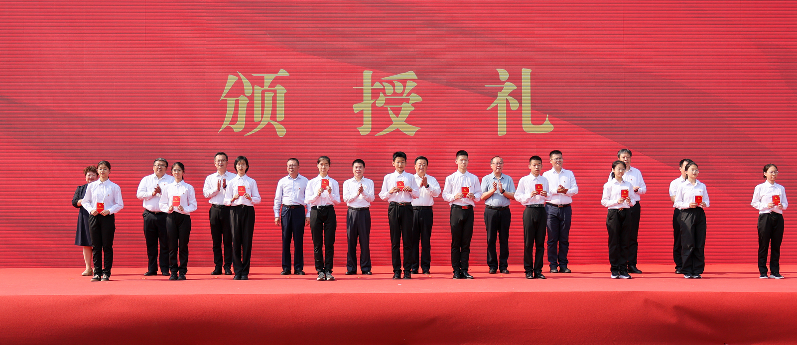 颁授仪式上,与会领导为新入队队员代表佩戴红领巾,为新发展的团员代表颁发团徽和团章,为新发展的党员代表授予党徽和党章。现场青年党员集体为共青团员佩戴团徽、颁发团章,共青团员则集体为少先队员佩戴红领巾。
