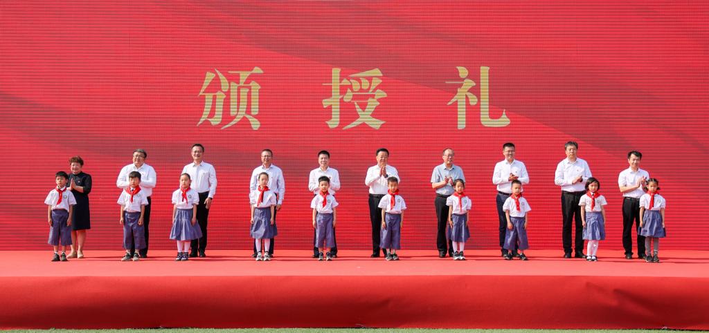 张志华指出,各级党组织要落实党建带团建制度机制,高度重视共青团和青年工作,注重从优秀共青团员中培养和发展党员,确保红色江山永不变色。各级团组织要履行好全团带队政治责任,规范和加强少先队推优入团、共青团推优入党工作机制,推进党、团、队育人链条的衔接和贯通。各位青年党员、共青团员、少先队员要进一步把忠诚镌刻心间,把使命扛在肩上,勤奋学习,挺膺担当,日拱一卒,功不唐捐,以青春之力激荡起强国建设、民族复兴的磅礴力量,让党徽、团徽、红领巾在奋斗中闪耀光芒,以青春力量谱写时代华章。
