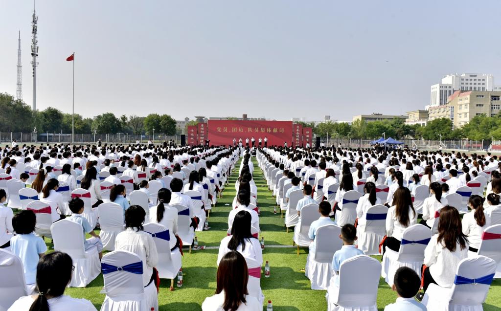 德州市关工委负责人,市委组织部、统战部、团委,德城区及天衢新区组织部、统战部、团委负责人,学校相关校领导,相关职能部门及各单位负责人,以及新发展党员、新发展团员、新入队队员代表1000余人参加活动。