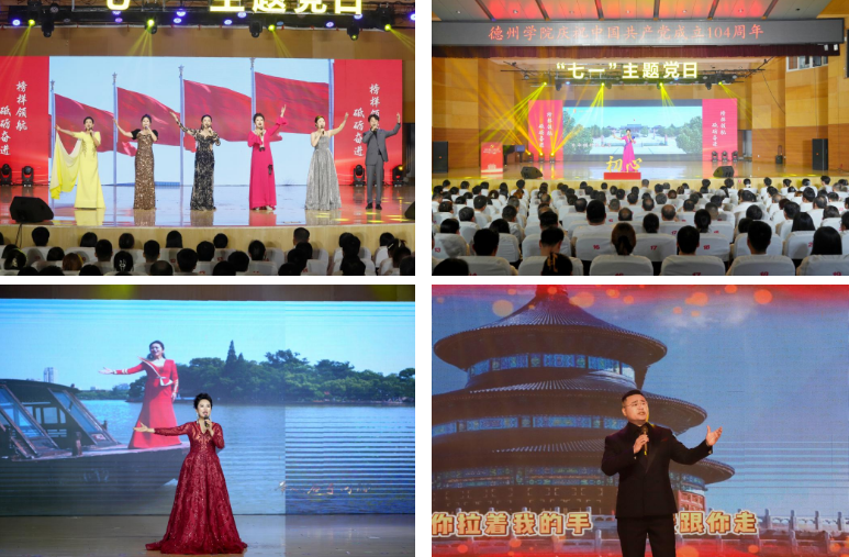 6月30日晚,德州学院“榜样领航 砥砺奋进”庆祝中国共产党成立104周年“七一”主题党日活动在南校区音乐厅举行。