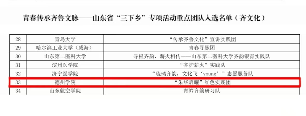 为引导高校青年在寻“根”传承中铸牢“中华之魂”,为高质量推进文化强省建设凝聚青春力量,共青团山东省委、山东省学生联合会主办了“青春传承齐鲁文脉”山东省2025年“三下乡”专项实践活动。各高校师生积极参与、踊跃报名,齐文化专项活动收到省内外88所高校319个团队3200余名师生报名,最终遴选出50支团队入选齐文化重点团队。其中,我校生态与资源环境学院“朱华启曜”红色实践团表现突出,成功入选齐文化重点团队。