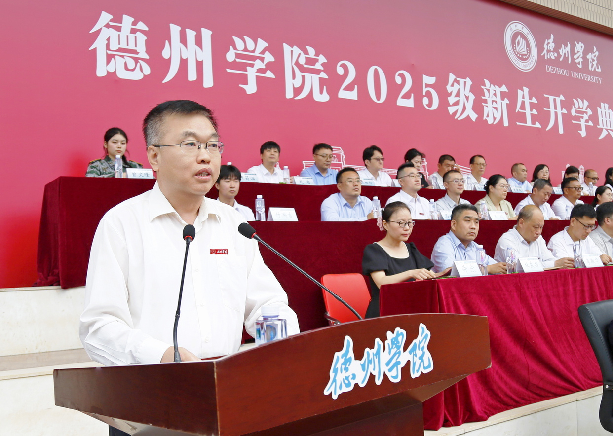 金秋九月,硕果累累,叠翠流金。9月8日,德州学院2025级新生开学典礼暨军训动员大会举行。校党委书记吴君,党委副书记、校长赵长林等党委班子成员出席典礼。来自全国23个省市自治区的8988名本专科生、38名首届硕士研究生将在美丽的德院开启崭新的人生旅程。党委副书记张存峰主持典礼。