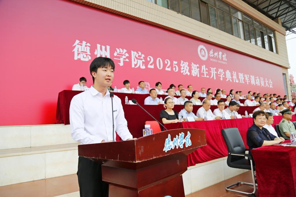 赵长林作题为《修德勤学、追求卓越,在强国征程中实现人生理想》的讲话,代表全校师生员工向全体新生表示热烈欢迎。他指出,54年来,德州学院朝乾夕惕、栉风沐雨,历代德院人以“国之大者”的胸怀,书写着地方高校服务国家战略和区域经济社会发展的历史担当。他对新生提出三点期望:一是要坚定理想信念,树立远大志向。要立鸿鹄之志,胸怀民族复兴伟业,苦练强国建设本领,刻苦精进,不虚度光阴,以卓越自我建时代新功。二是要掌握广博知识,练就真才实学。通过忘我学习、努力实践、勤学苦练、知行合一,成为一位拥有广博知识、真才实学和终身学习能力的人,在学术和人生道路上行稳致远。三是要保持身心健康,拥有幸福人生。规划好每天学习和身体锻炼的时间安排,学会及时识别、情绪管理和自我调适。希望同学们以青春之我、奋斗之我,做情系家国、志存高远的“修德”之人;做本领过硬、追求卓越的“勤学”之人;做独立思考、通晓是非的“明辨”之人;做勤勉踏实、知行合一的“笃实”之人。发扬德院精神,在服务强国建设、民族复兴伟业中挺膺担当。