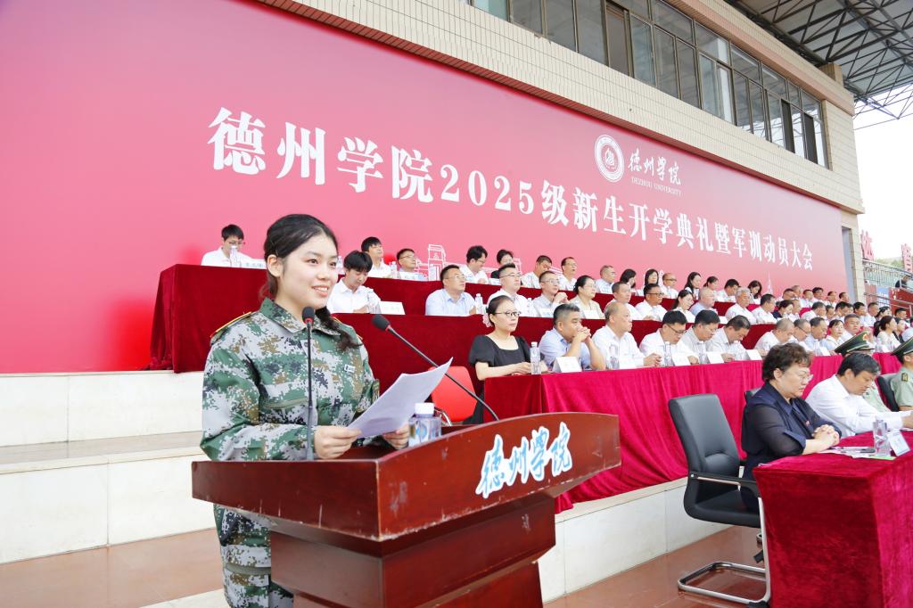 典礼上举行了新生佩戴德州学院徽章仪式,校领导为新生代表佩戴德州学院徽章。胸前闪耀的徽章,不仅代表着“德院人”的身份,更承载着“德院人”的使命与荣光。典礼在全体2025级新生铿锵有力的誓言中落下帷幕。