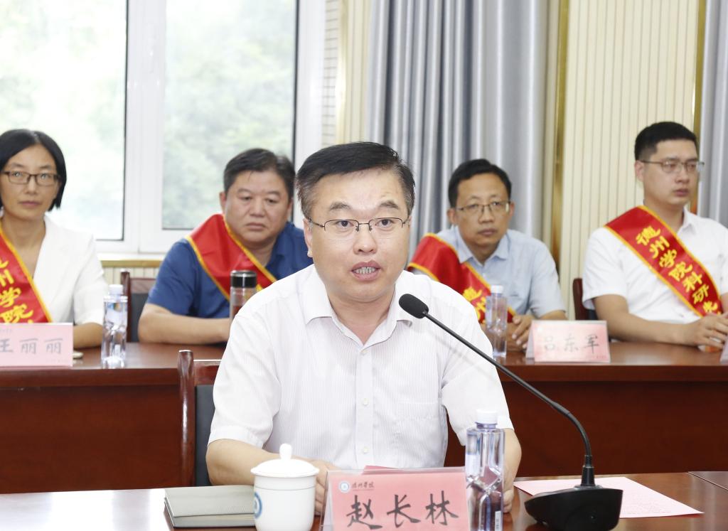 赵长林在主持会议时强调,希望大家会后把本次会议精神传达到本单位每一位教职员工,在全校弘扬起尊师重教、涵养师德、潜心治学、开拓创新的良好风尚。在全体教师中弘扬努力做精于传道授业的“经师”、“仁师”和大先生的良好师风,争做学生示范,促进学生全面发展,以更加昂扬的斗志、进取的精神和扎实的作风投入到学校各项事业发展建设中。
