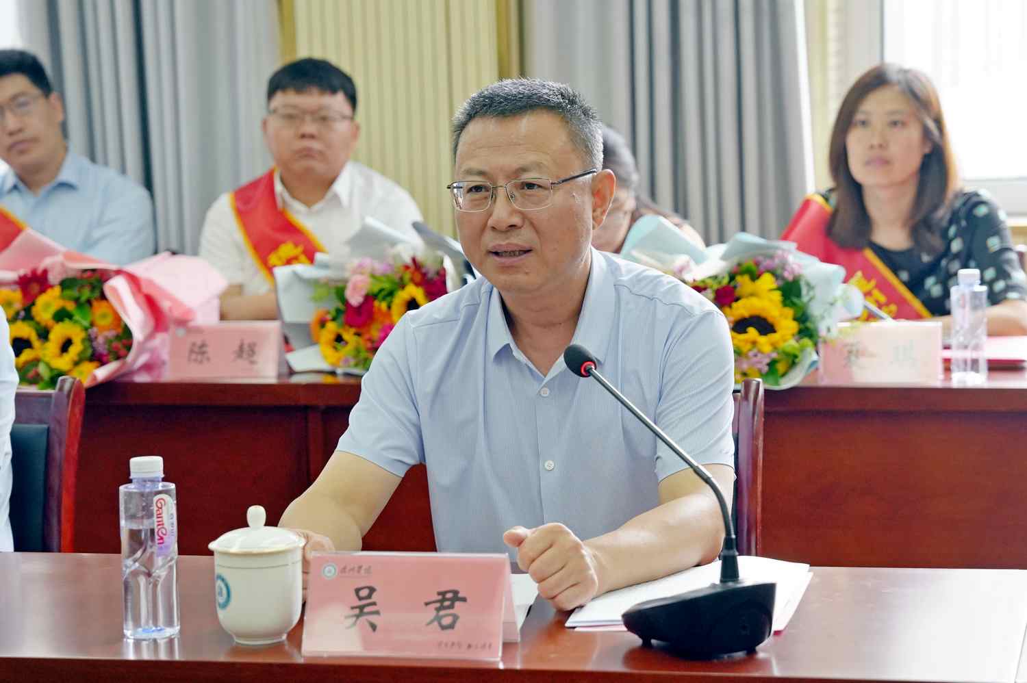 吴君代表学校向受到表彰的教师表示热烈祝贺,向全校兢兢业业、无私奉献的教职员工、离退休老同志致以节日的问候和崇高的敬意。他在讲话中指出,建设高水平应用型大学离不开一流的教师队伍,推进学校高质量发展更需要培养建设造就一支高素质、强本领、能战斗,特别是能打硬仗的教师队伍,需要涌现出一大批好老师。他向全校教师和教育工作者提出三点希望,一是坚守育人初心,当好“引路人”。广大教师要以更高的政治站位和历史使命要求自己,做学生锤炼品格、学习知识、创新思维、奉献祖国的引路人,引领广大青年学生找到自身所处的历史方位、把准时间节点、锚定人生坐标,成长为“有理想、有本领、有担当”的新时代青年。二是涵养高尚师德,争做“大先生”。要坚守“正人先正己、育人先育心”理念,自觉加强道德修养,提升人格品质,做学生为学、为事、为人的大先生,引导学生扣好人生的第一粒扣子。三是具备扎实学识,潜心做“大学问”。要牢固树立终身学习的理念,始终站在知识发展前沿,刻苦钻研、严谨笃学,引导学生探索相关学科的前沿动态,培养学生探索未来的潜质与能力。希望全校教职员工以这次教师节表彰为契机,在尊师重教的良好风尚中,在创建高水平、有特色、国际化应用型大学的新征程上再立新功。