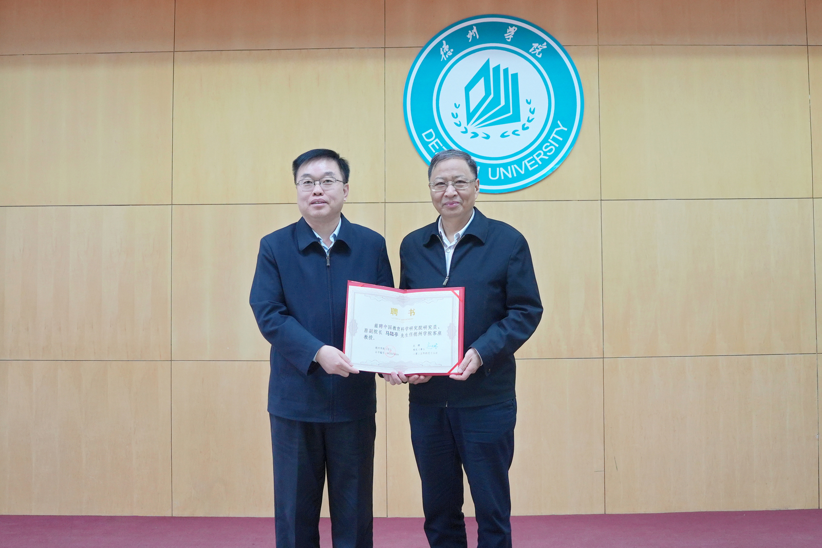 党委副书记、校长赵长林出席并为马陆亭颁发客座教授聘书,党委委员、副校长李甲亮主持。