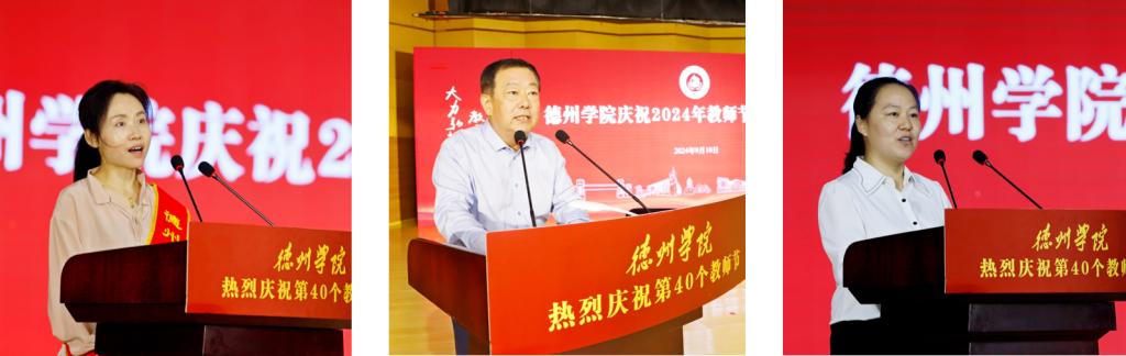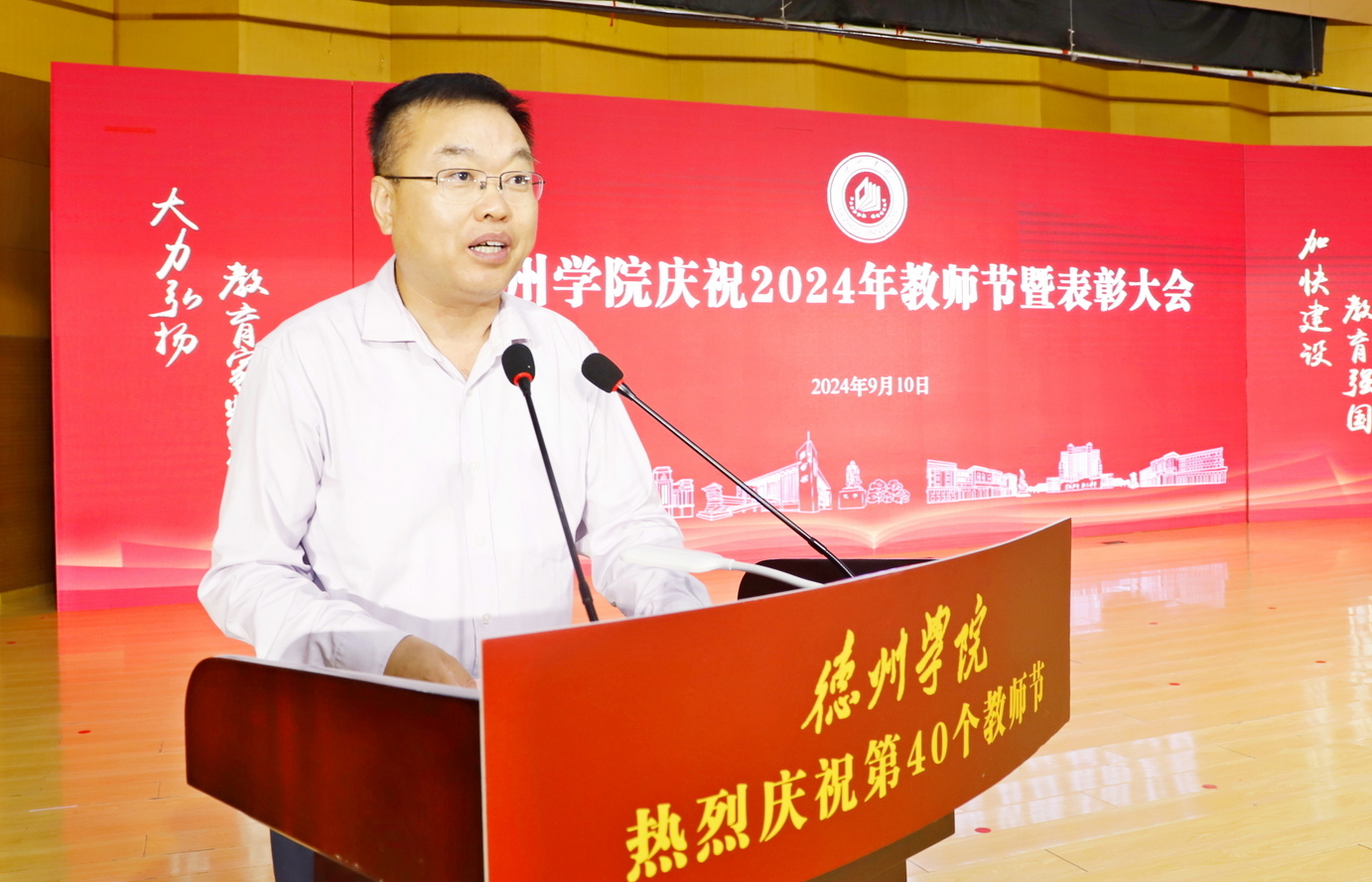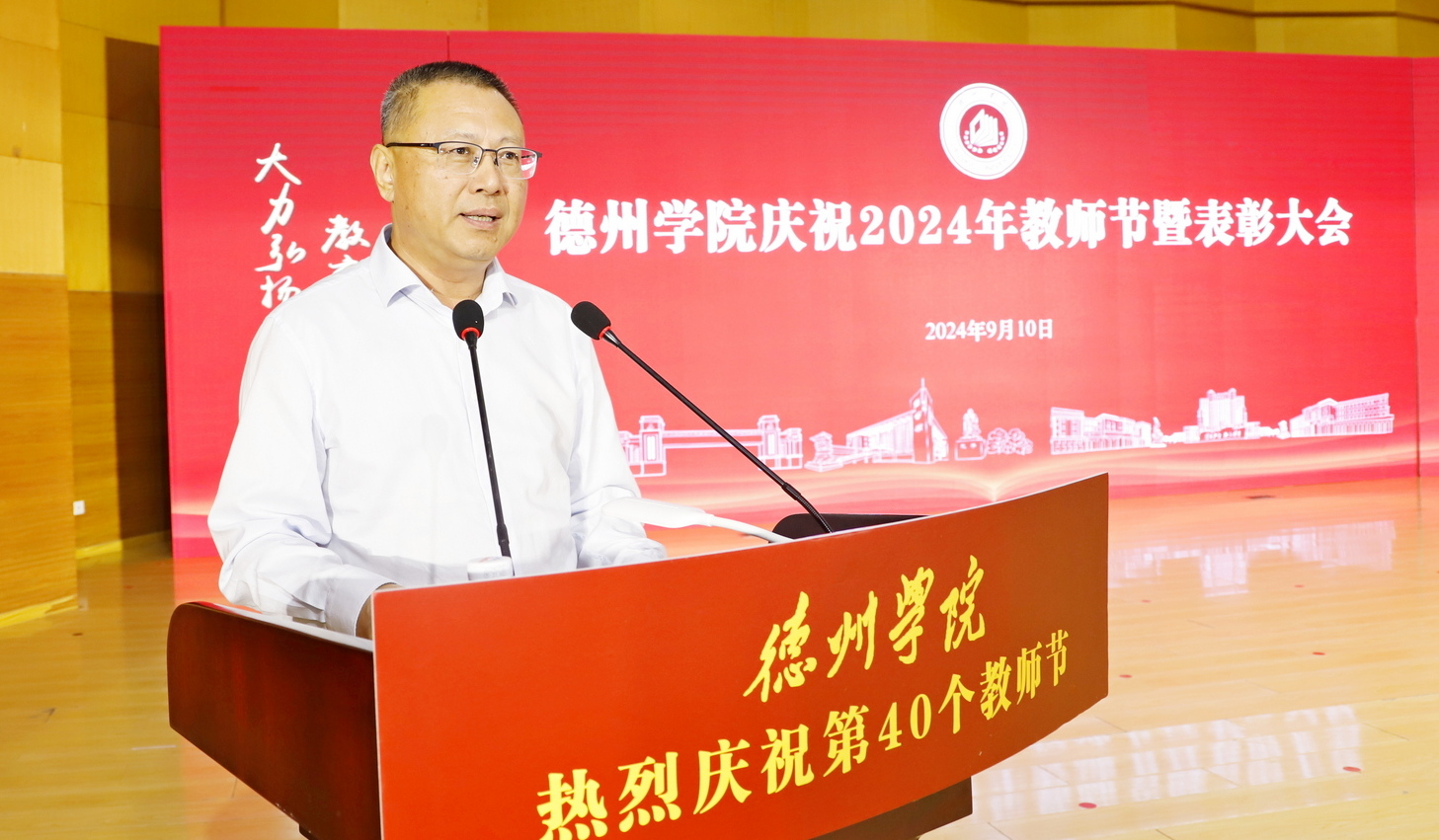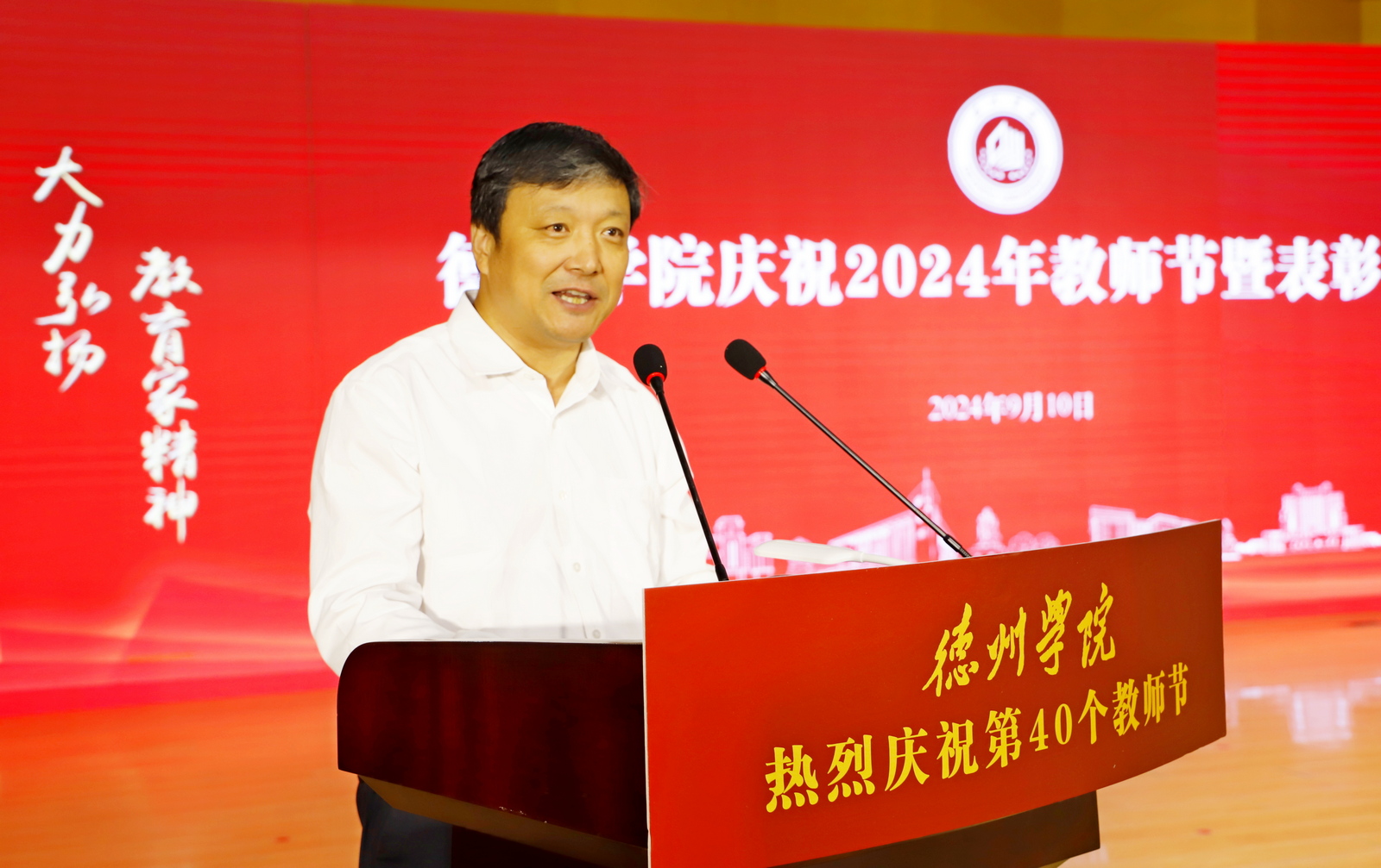 9月10日上午,德州学院庆祝2024年教师节暨表彰大会在音乐厅隆重举行。学校领导班子成员出席会议。校党委书记吴君讲话,会议由党委副书记、校长赵长林主持。