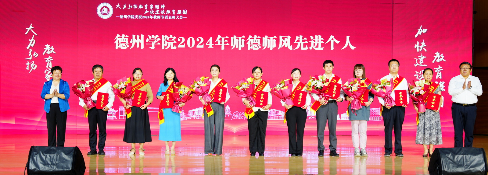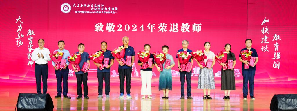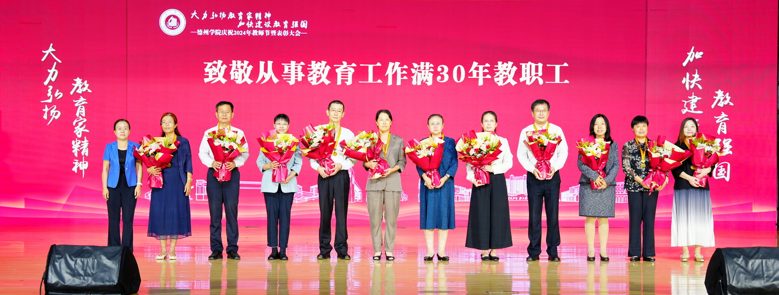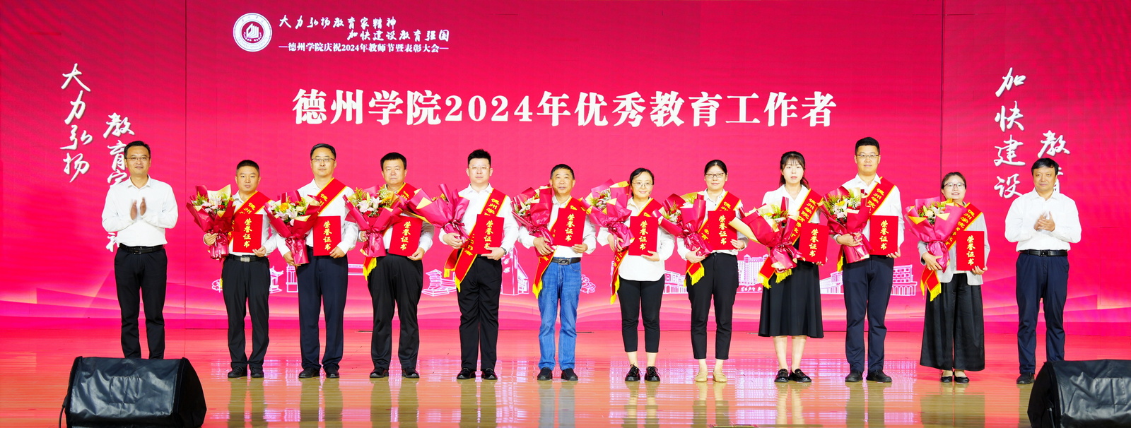 党委委员、副校长李甲亮宣读了《关于表彰2024年度优秀教师的决定》。大会表彰了获得省级及以上荣誉称号的教师和团队,德州学院2024年优秀教师、优秀教育工作者、师德师风先进个人。大会为2024年荣退教师和从事教育工作满30年教职工颁发了纪念品和纪念章。