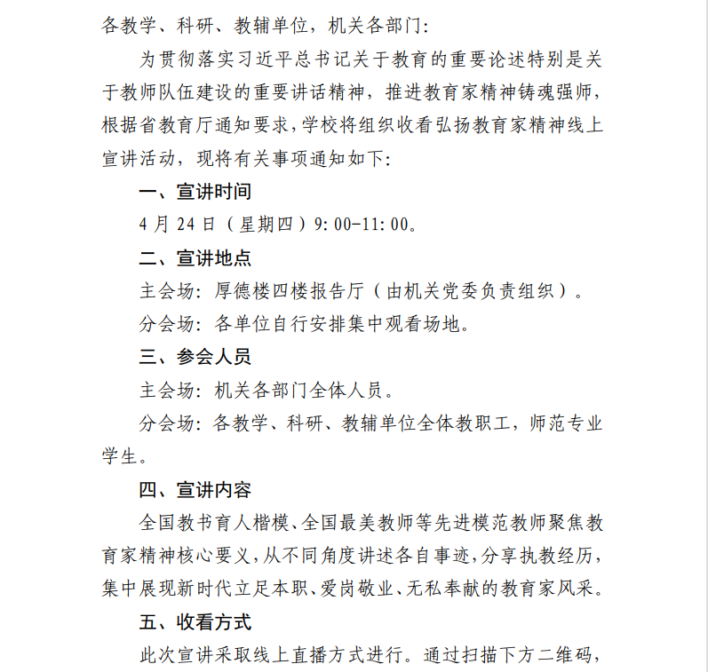 关于组织收看弘扬教育家精神宣讲活动的通知