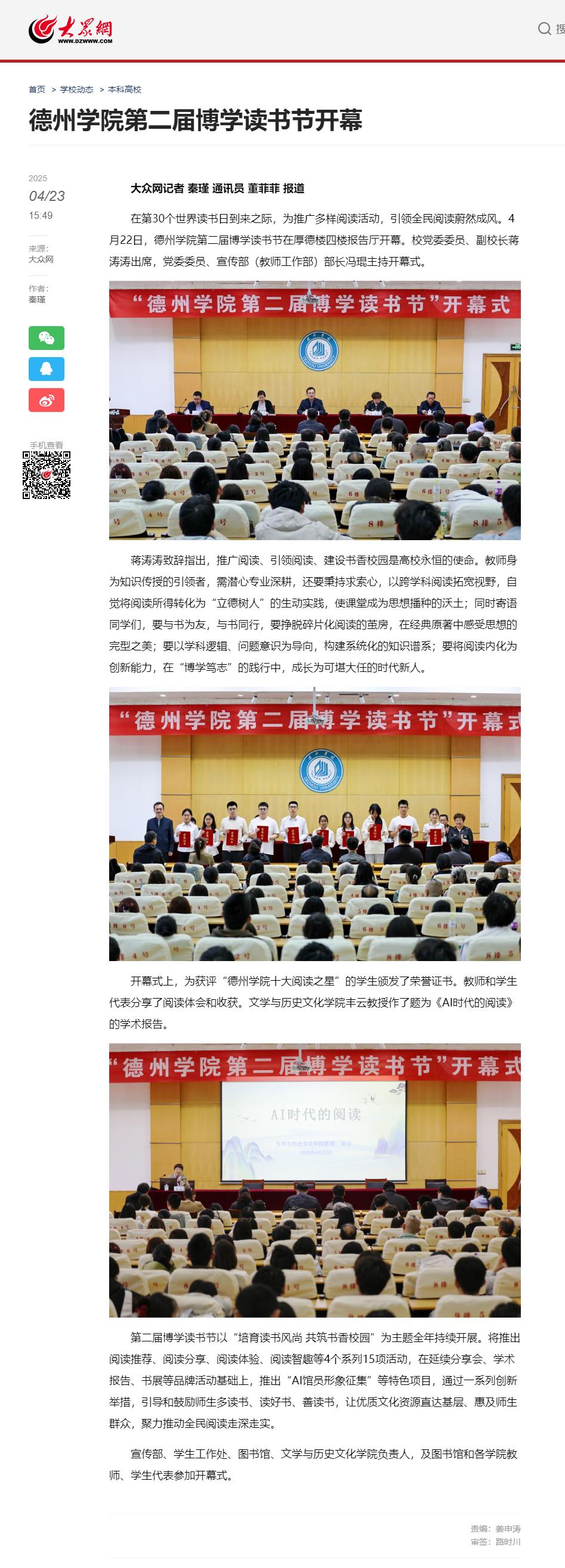 【山东商报·速豹新闻网】德州学院第二届博学读书节开幕