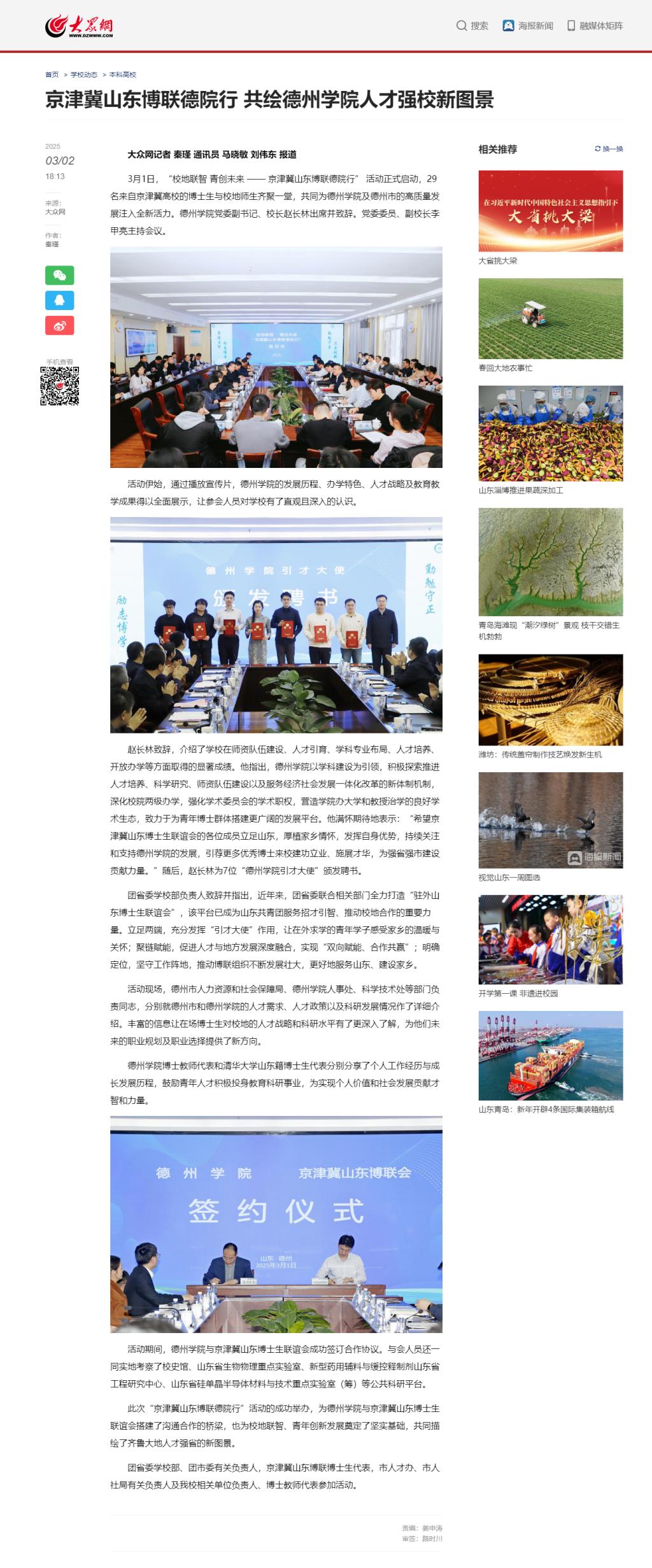【大众网】京津冀山东博联德院行 共绘德州学院人才强校新图景