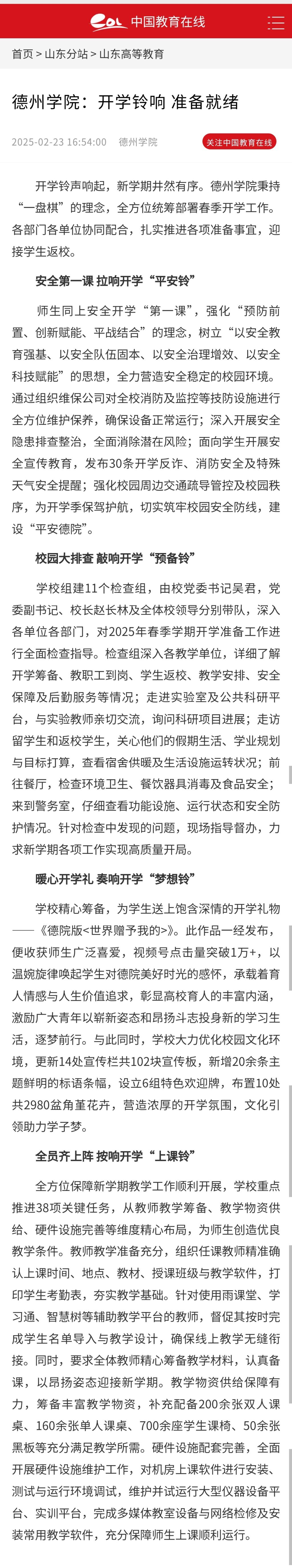【中国教育在线】德州学院:开学铃响 准备就绪