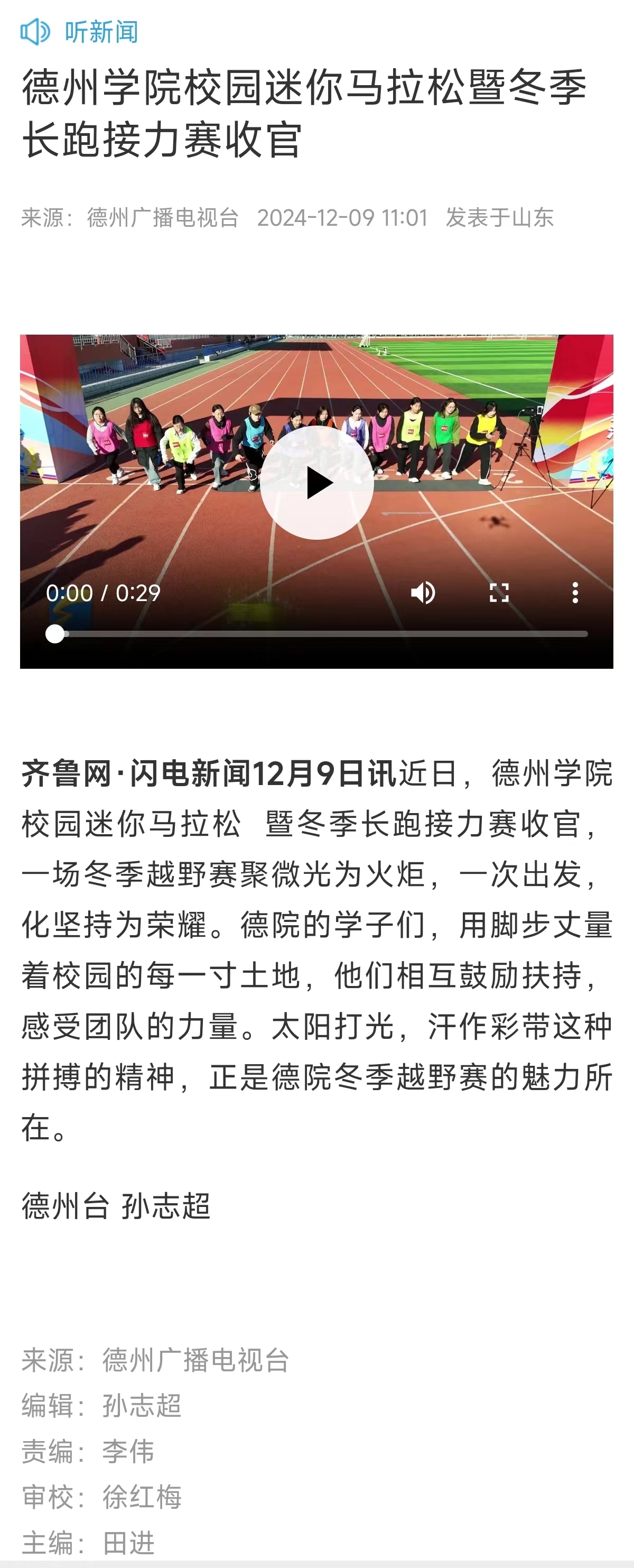 【齐鲁网】德州学院校园迷你马拉松暨冬季长跑接力赛收官