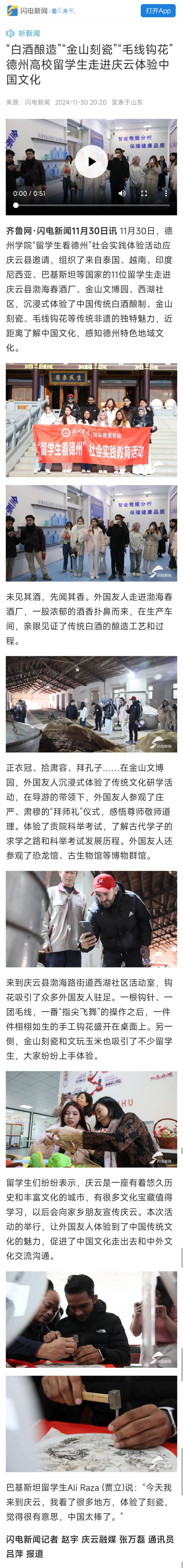 【闪电新闻】“白酒酿造”“金山刻瓷”“毛线钩花” 德州高校留学生走进庆云体验中国文化