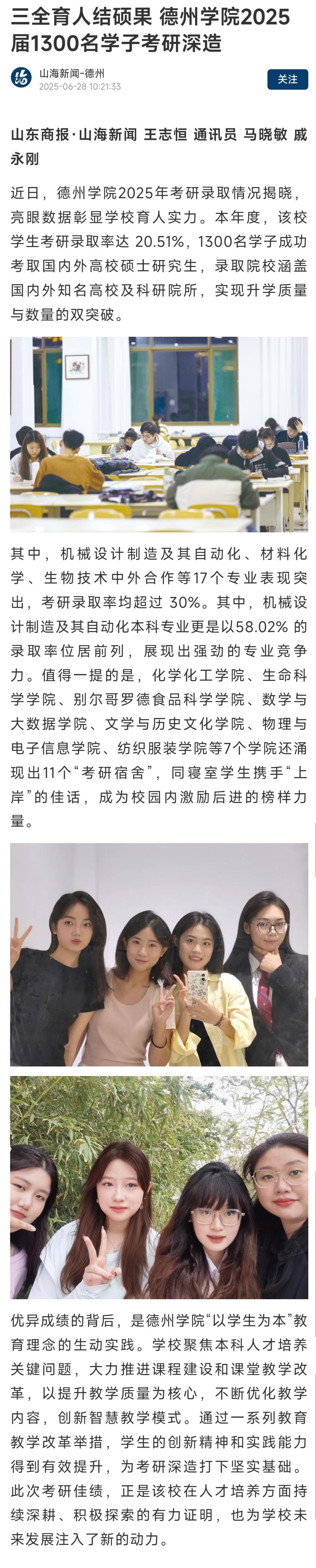 【山东商报】三全育人结硕果 德州学院2025届1300名学子考研深造
